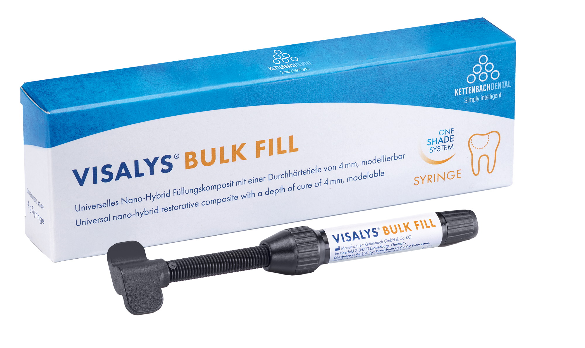 Visalys® Bulk Fill is BIS-GMA vrij en leverbaar als 4g spuit en als 0,25g carpule verpakking.
