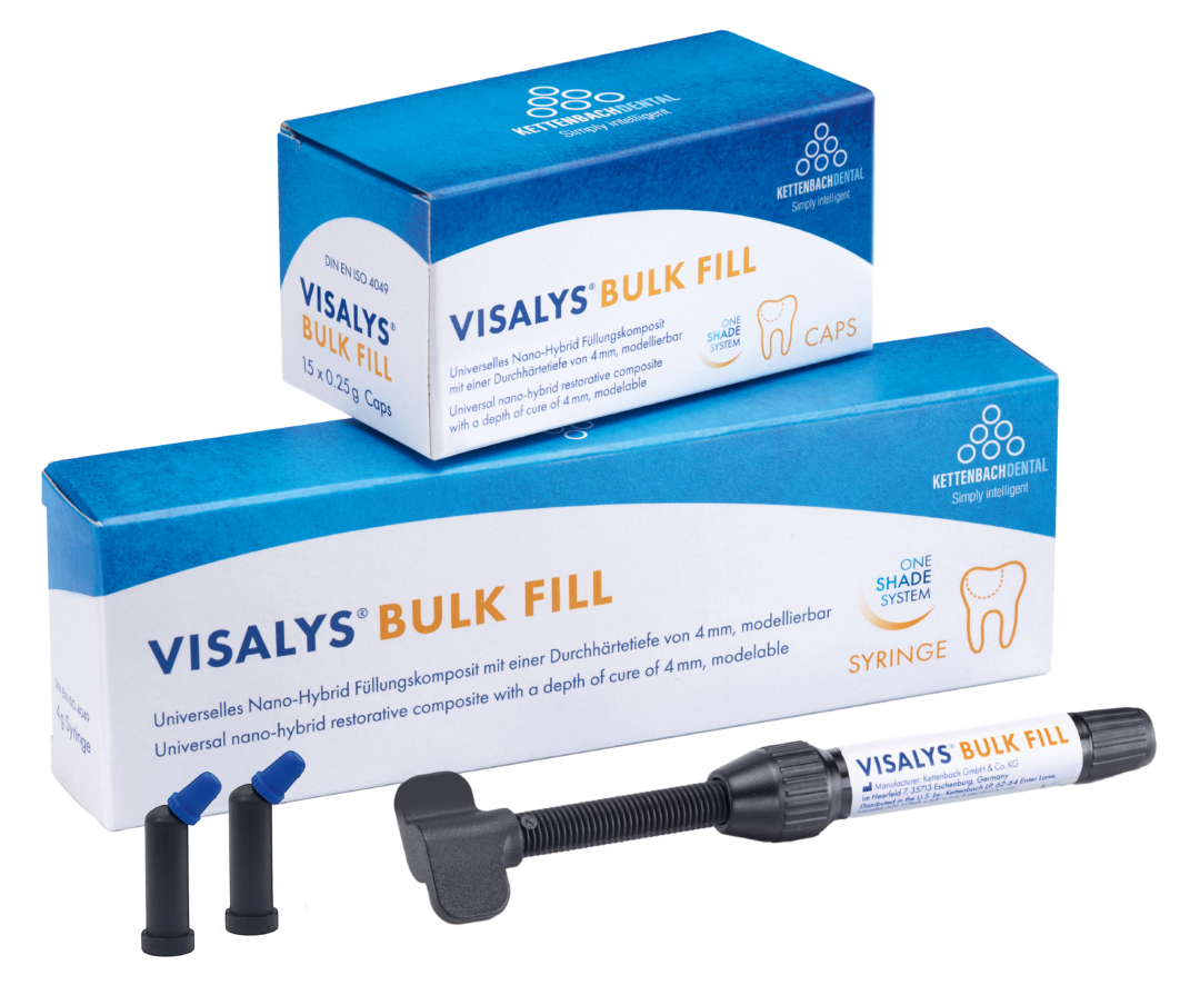 Visalys® Bulk Fill is samen met Visalys® Bulk Flow een lichtuithardend Nano-hybridecomposiet met uitstekende eigenschappen. Visalys® Bulk Fill is een modern en duurzaam One-Shade Bulk systeem dat te combineren is met Visalys® Bulk Flow.